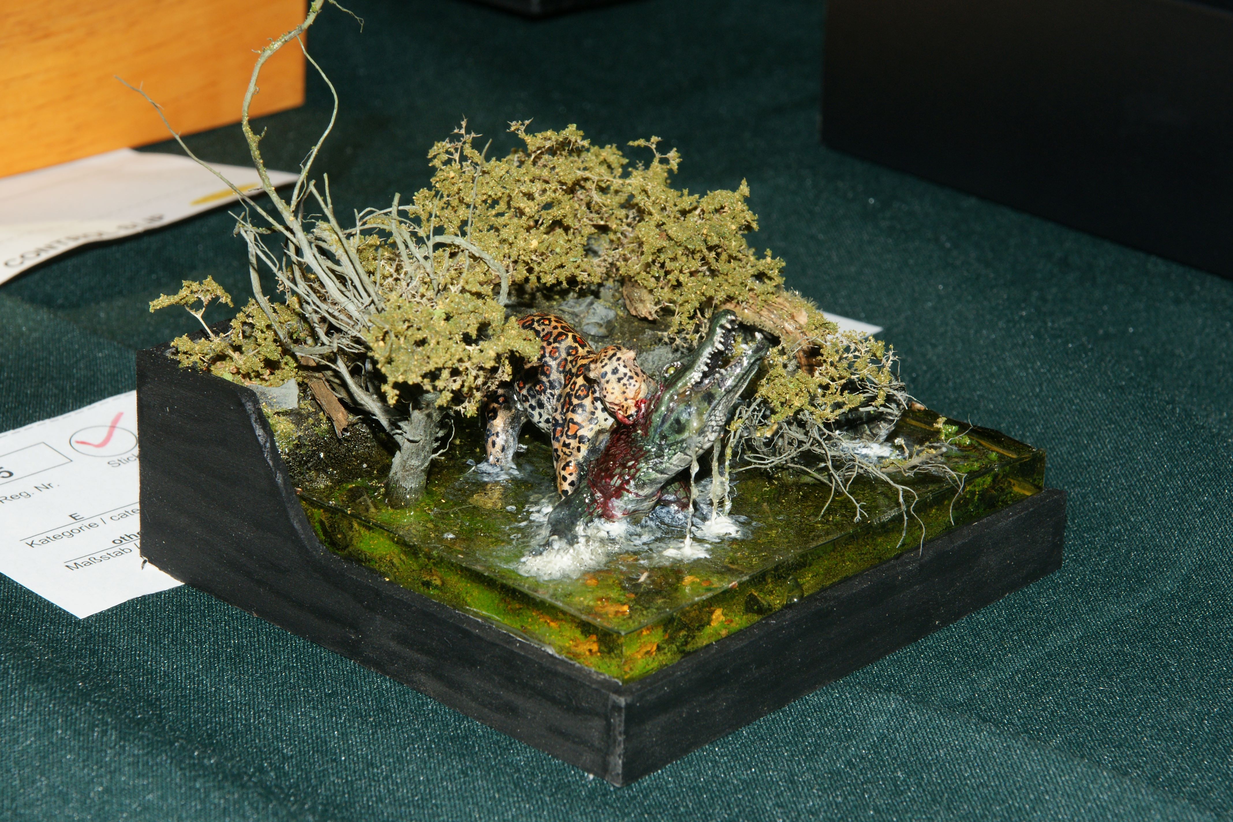 | E | Ein Jaguar ringt einen Kaiman in seichtem Wasser nieder | other | 3d Print - Animal den Miniatures | Alexander | Hager |